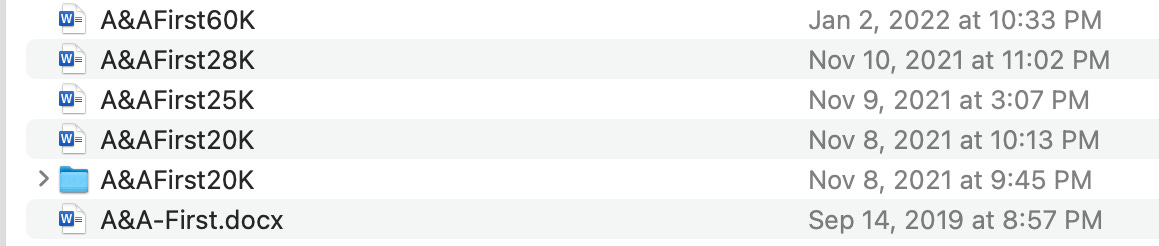 These early drafts (all of them written in the same Scrivener file) amount to 429,214 words. For those of you who don’t think in words, that’s about four Divergents.